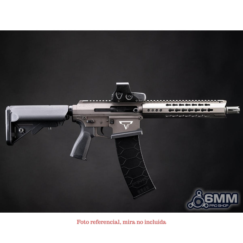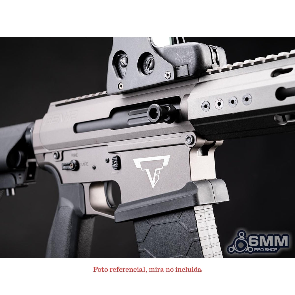La Dracarys Gen 12 es el resultado de la colaboración oficial entre Taran Tactical Innovations y Genesis Arms, recreada por 6mmProShop para airsoft en una versión AEG con MOSFET integrado. Diseñada sobre un receptor estilo AR-10, ofrece controles familiares y una estética imponente, con licencia completa y logotipos grabados a láser que replican fielmente el arma real.