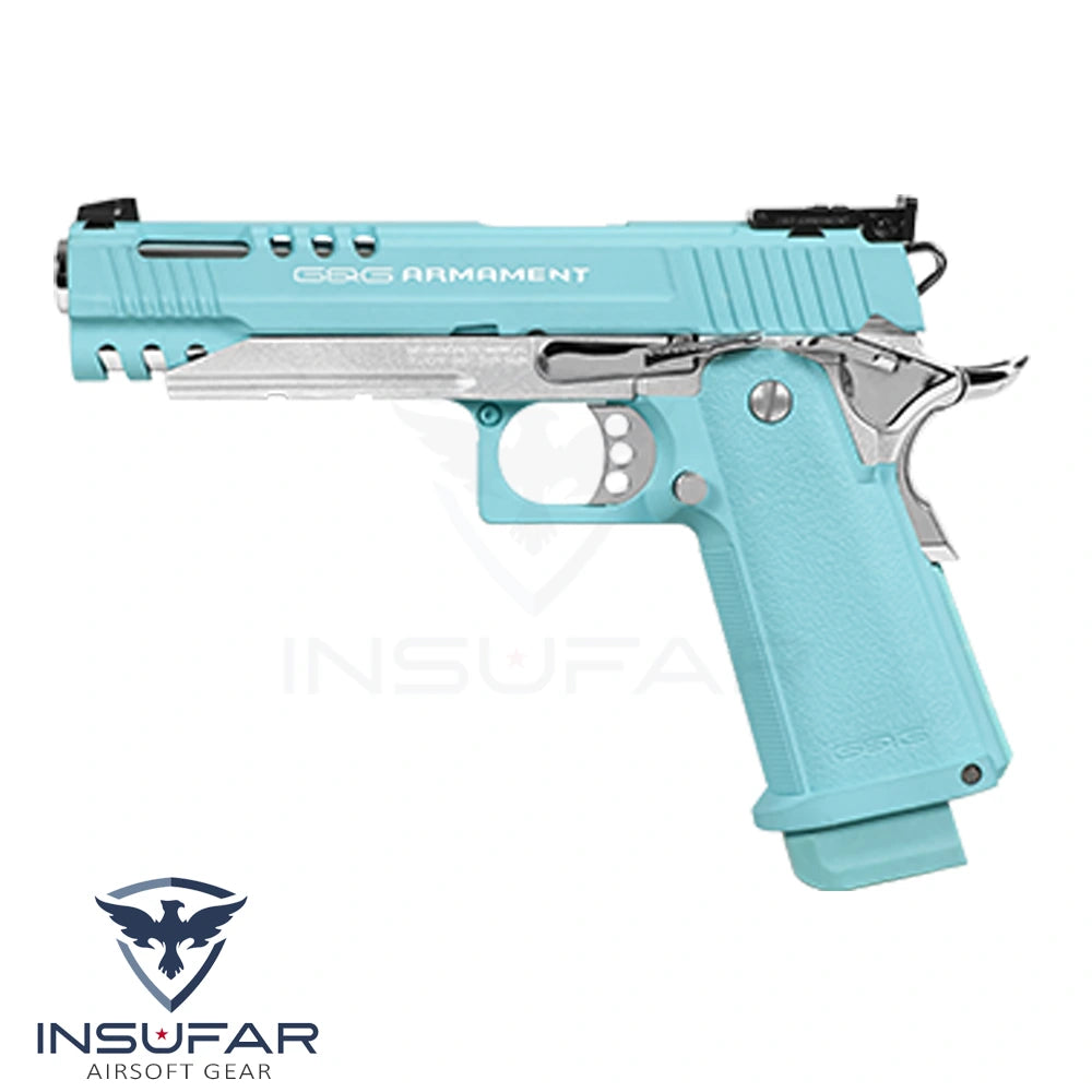 La G&G GPM1911 CP Macaron Blue es la combinación perfecta entre rendimiento y exclusividad, ideal para jugadores de airsoft que buscan una pistola confiable y con un diseño llamativo.