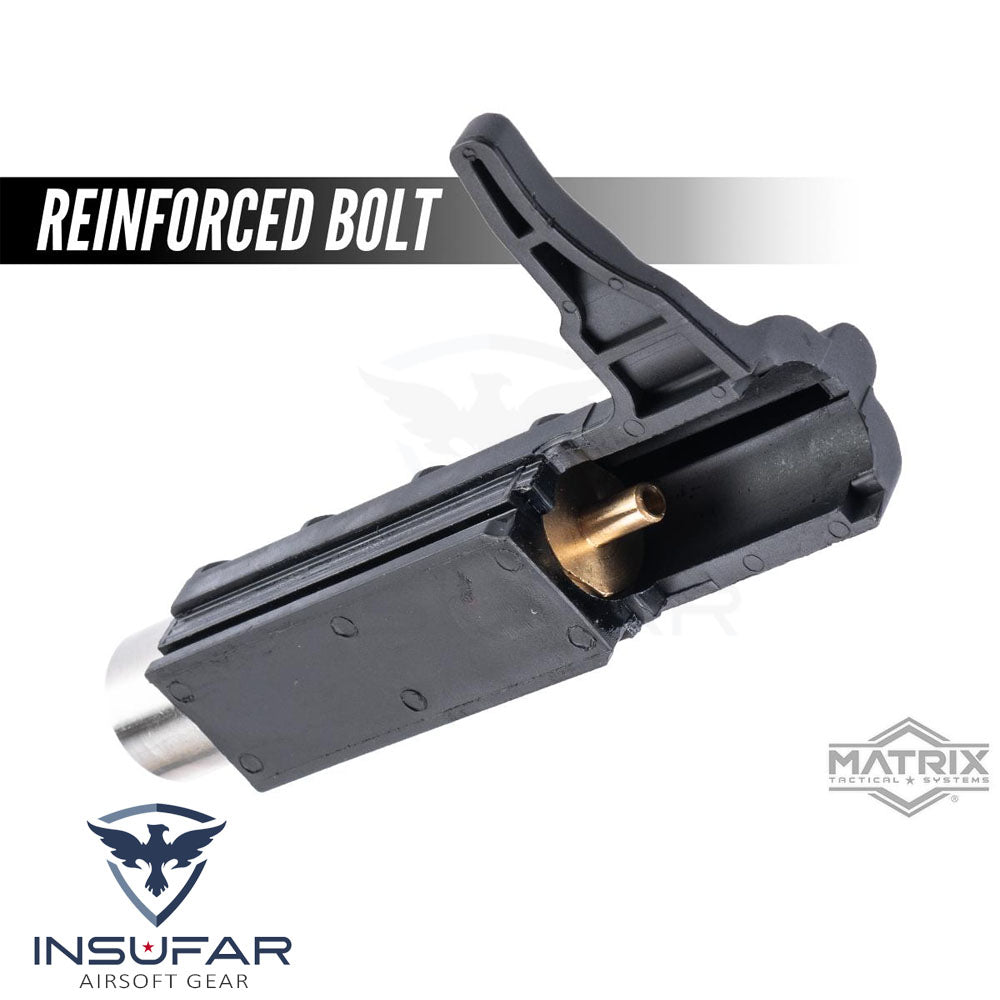 Su pistón anodizado es resistente al desgaste y está optimizado para soportar la presión del CO2, permitiendo un rendimiento más eficiente en el campo de juego. Este kit funciona con cartuchos de CO2 de 12g (no incluidos) y cuenta con un cerrojo reforzado, asegurando una mayor resistencia y vida útil del sistema.