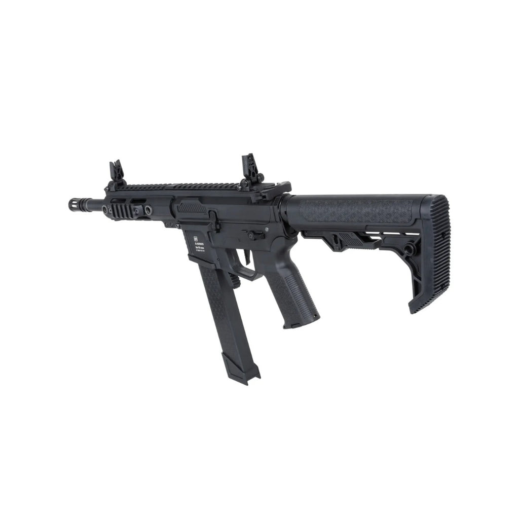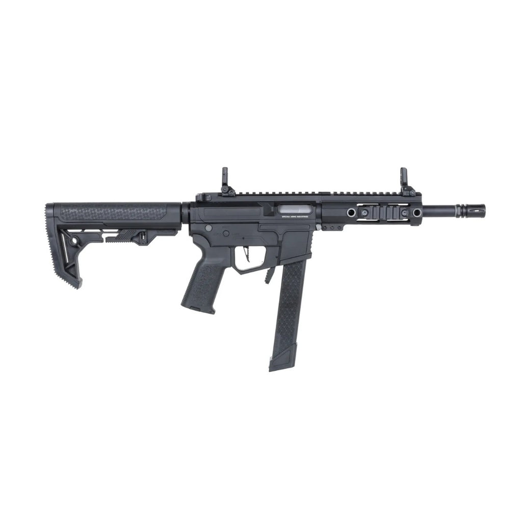 La Specna Arms SA-FX01 FLEX™ Gen.2 es una carabina AEG ligera y compacta, ideal para CQB y combates dinámicos, equipada con el avanzado sistema HAL™ ETU que ofrece funciones electrónicas de alto nivel: binary trigger, burst programable, pre-cocking ajustable y freno activo, lo que maximiza el control del jugador y la respuesta de la réplica.